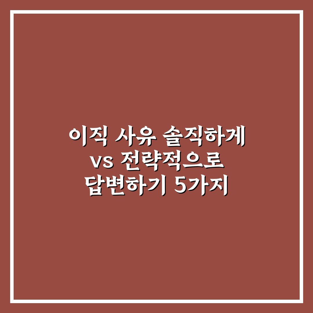 이직 사유 솔직하게 vs 전략적으로 답변하기 5가지 핵심가이드 비교 분석 2026년 04월 20일 작성자: 인포 이직 사유 솔직하게 vs 전략적으로 답변하기의 장단점과 상황별 활용법을 비교해 효과적인 면접 준비 방법을 안내합니다